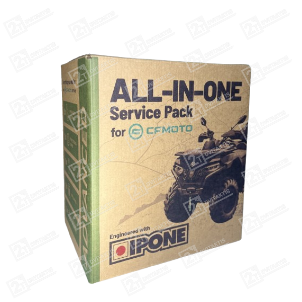 ALL-IN-ONE Techninio aptarnavimo rinkinys CFMOTO (3+1) yra pilnas serviso komplektas CFMOTO CFORCE keturračiams su IPONE alyvomis ir Hiflo alyvos filtru.