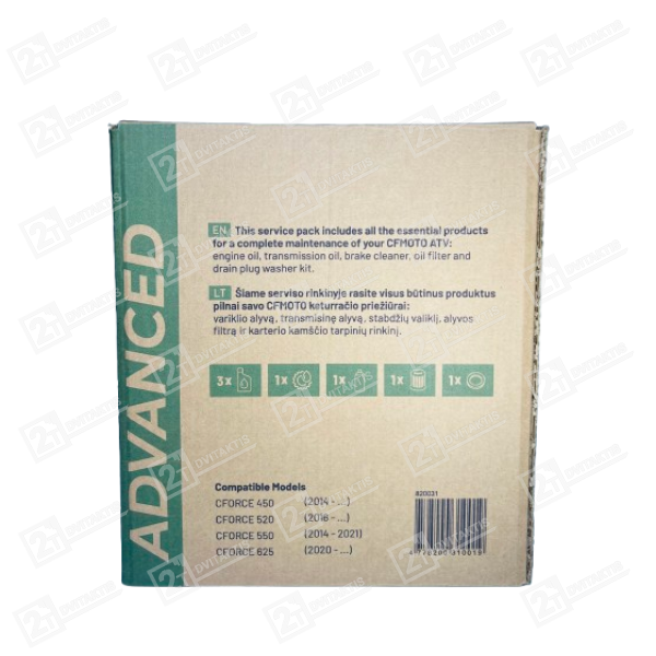 • Viskas viename rinkinyje – nereikia atskirai derinti alyvų ir filtro, visi komponentai jau suderinti CFMOTO CFORCE modeliams.