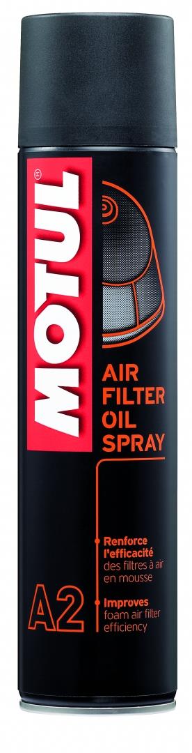 MOTUL A2 Air Filter Oil Spray – tai specialus alyvos purškiklis, skirtas visiems porėtiems motociklų oro filtrams iš putplasčio. Užtikrina efektyvų dulkių, smėlio ir kitų nešvarumų sulaikymą, nepraleidžiant jų į variklio vidų net ir sudėtingomis bekelės sąlygomis.