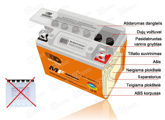 Akumuliatoriaus tipas i-GEL / aktyvuotas gamykloje