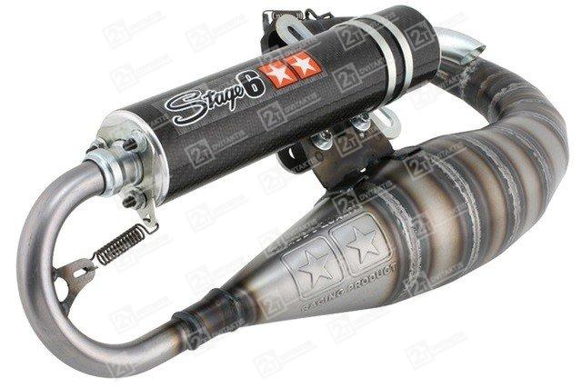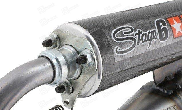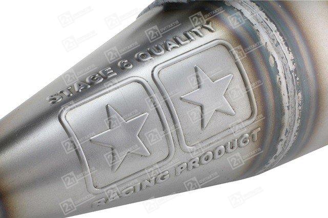 Stage6 R1400 išmetimo sistema yra galingiausia šio gamintojo išmetimo sistema. Trumpas rezonansinės kameros ilgis reiškia didelį efektyvumą viršutiniame sūkių diapazone. Suvirinta rankomis – pagaminta atkreipiant dėmesį į kiekvieną smulkmeną. Spyruoklinis išmetimo antgalio ir slopinimo antgalio tvirtinimas. Išmetimas galingiausiems Mid-race ir High-end cilindrams. Išmetimas tiekiamas su visais surinkimui reikalingais komponentais.