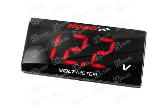 Koso Slim Style voltmetras yra mažas, skaitmeninis, universalus LED indikatorius, kurį dėl mažų matmenų (56,4 x 27 x 11 mm) galima montuoti beveik bet kur. Tai leis lengvai patikrinti akumuliatoriaus būklę ir galimus krovimo gedimus. Matavimo diapazonas: 6–19,9 voltų.